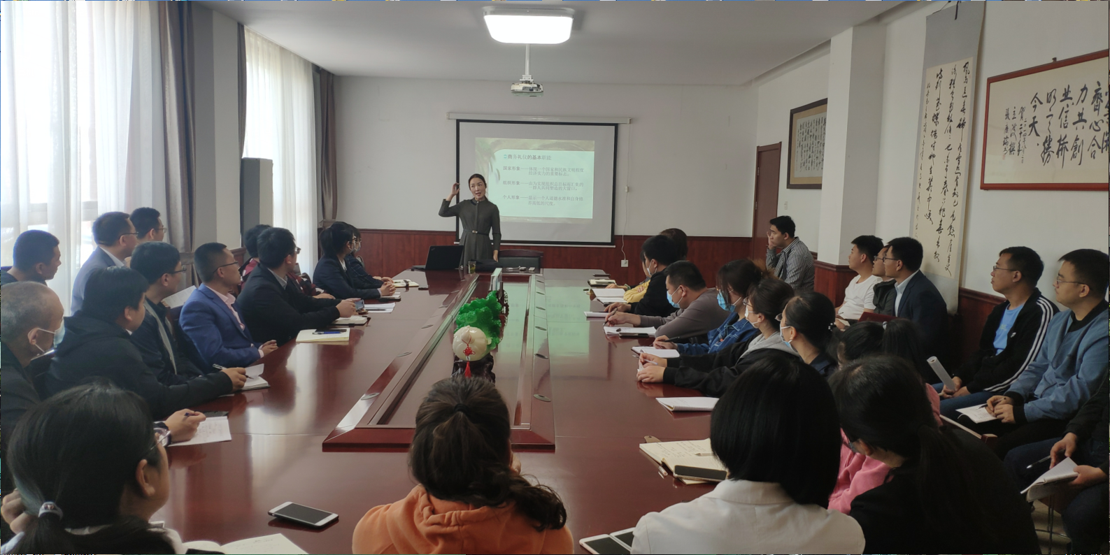 5月5號,為提高公司整體形象,提高員工業(yè)務(wù)水平,公司請禮儀老師來公司培訓(xùn),經(jīng)過老師的講解,公司開始實(shí)施全體員工著裝得體的政策,周一至周五全部著西裝、皮鞋。