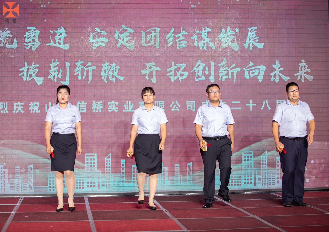 歲月如歌,風(fēng)霜如畫,二十八年彈指一揮間,山東信橋?qū)崢I(yè)有限公司(以下簡稱山東信橋)迎來了二十八周歲的生日。二十八年來,信橋人在激烈的市場競爭中奮力拼搏、砥礪前行,接受了市場風(fēng)風(fēng)雨雨的洗禮,取得了累累碩果。為了慶祝這一特殊的日子,2022年8月8日,以“激流勇進,安定團結(jié)謀發(fā)展 披荊斬棘,開拓創(chuàng)新向未來”為主題的山東信橋二十八周年慶典活動在寶盛大酒店舉行。
