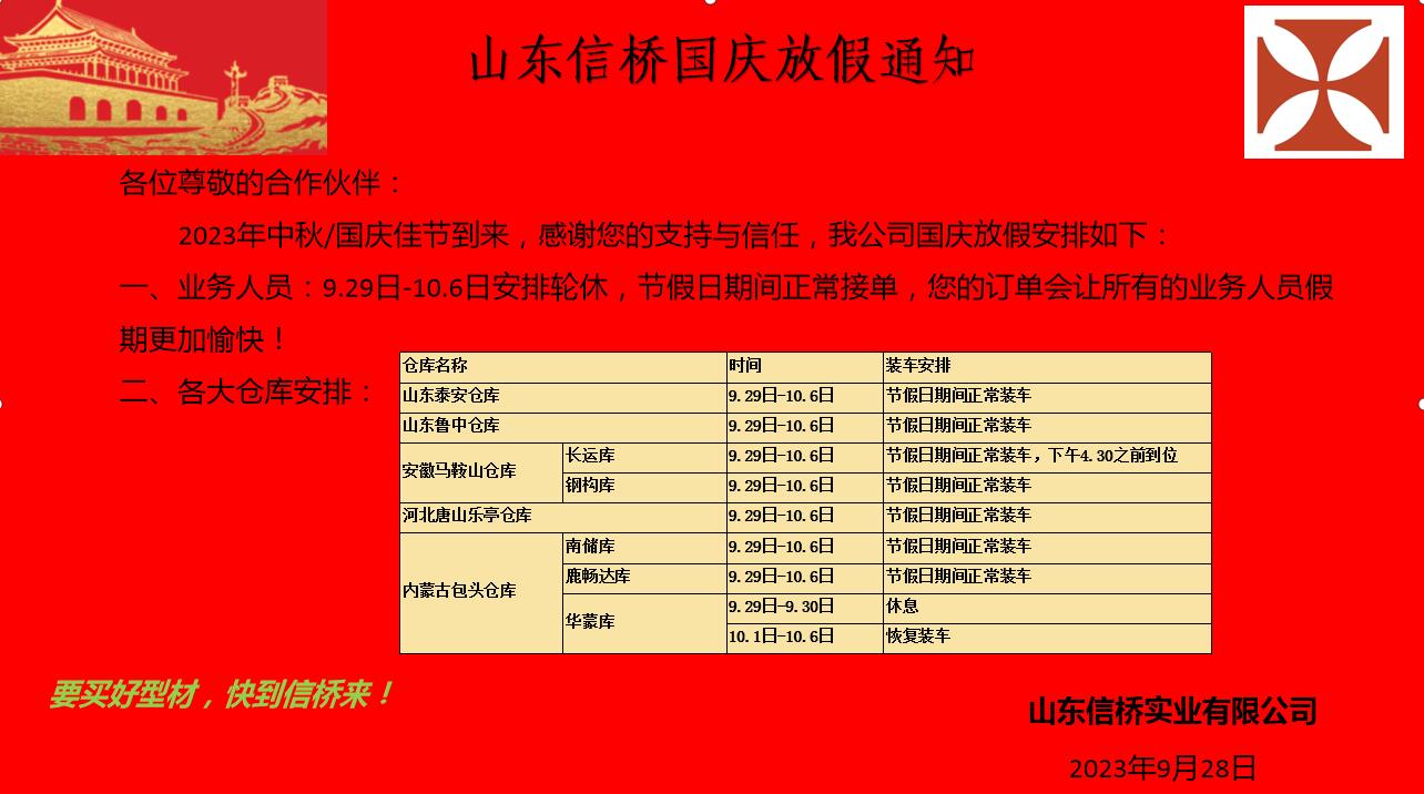 山東信橋?qū)崢I(yè)有限公司放假通知